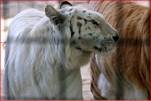 The faintly striped, shaggy-maned creatures are the offspring of male lions and female tigers, which gives them the ability to both roar like lions and chuff like tigers-a supposedly affectionate sound that falls somewhere between a purr and a raspberry.